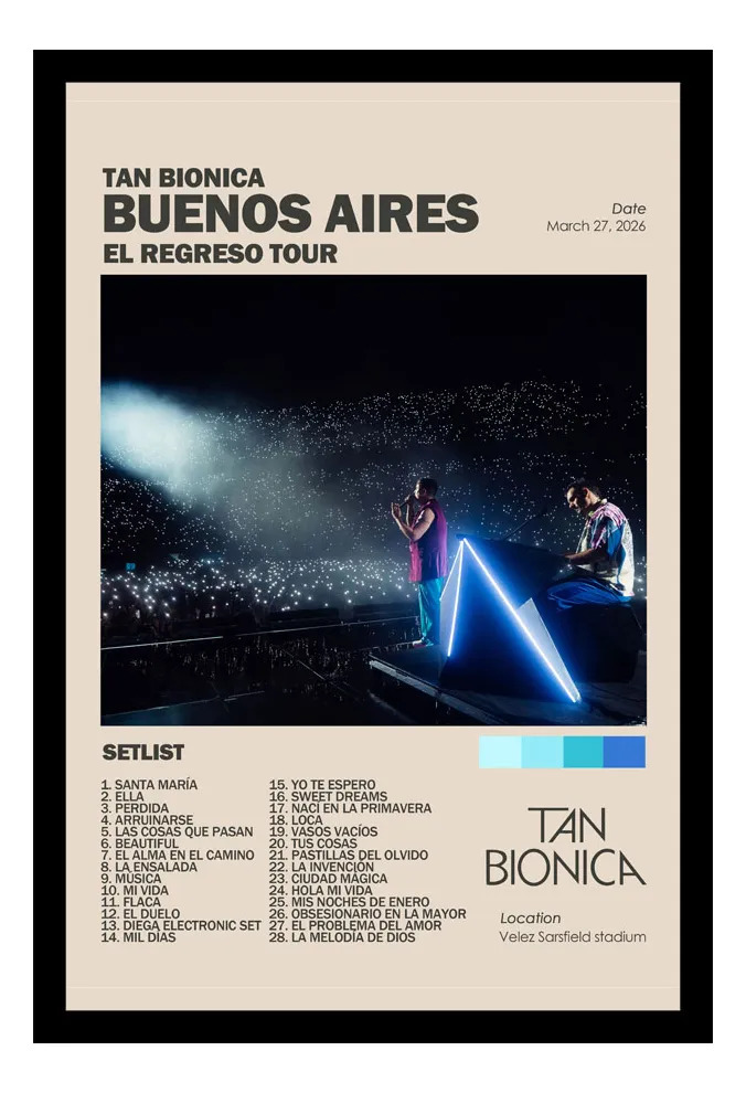 Cuadro Decorativo – Tan Bionica Velez (setlist) – A3 30×40