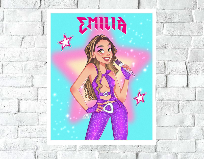Ya sea para sorprender a un fanático con un detalle especial o para darle un toque único a tus espacios, esta lámina es la opción perfecta. ¡Haz tu pedido ahora y disfruta de una decoración con la esencia de Emilia Mernes!