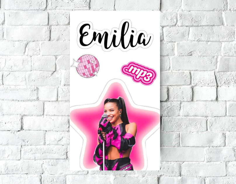 Ya sea para sorprender a un fanático con un detalle especial o para darle un toque único a tus espacios, esta lámina es la opción perfecta. ¡Haz tu pedido ahora y disfruta de una decoración con la esencia de Emilia Mernes!