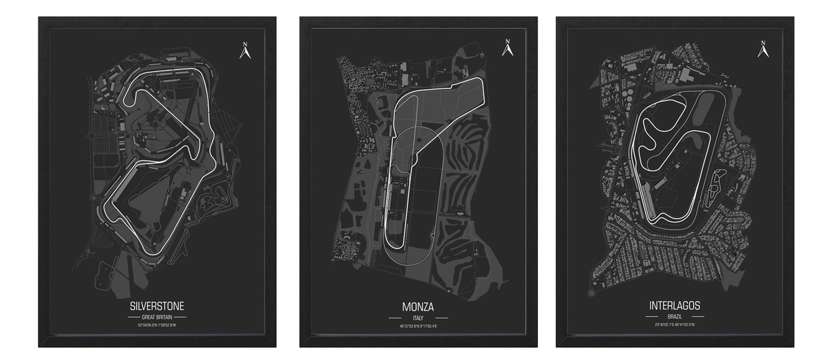 Set X3 Cuadros Decorativos Circuitos Formula 1 – A3 30×40 Cm